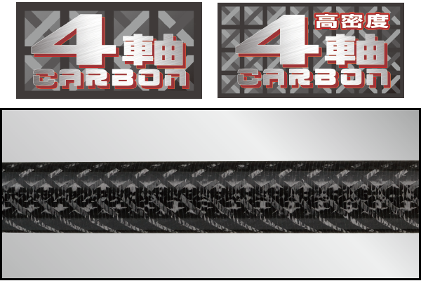 極薄高弾性カーボン繊維で構成された「超極薄高密度4軸カーボン」は、「高密度4軸カーボン」に加えてより軽く、より張りが出ることにより、持重り感、形状復元の速さに大きく影響するねじれ方向への力を効果的に抑える特性をもち、ブランクスの直進性と伝達性が向上。