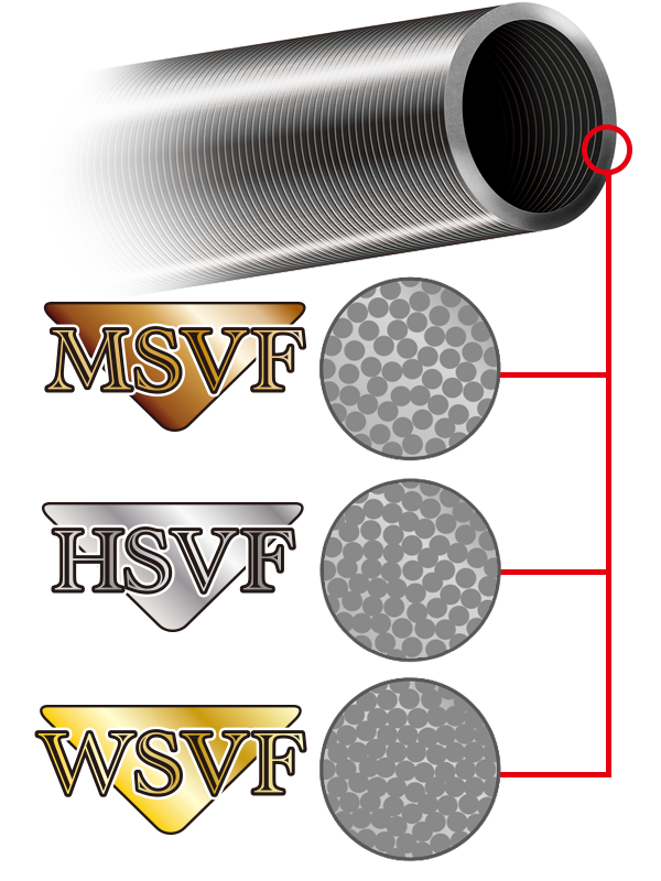 HSVFは、より樹脂量を減らし、カーボン繊維を密に配合。